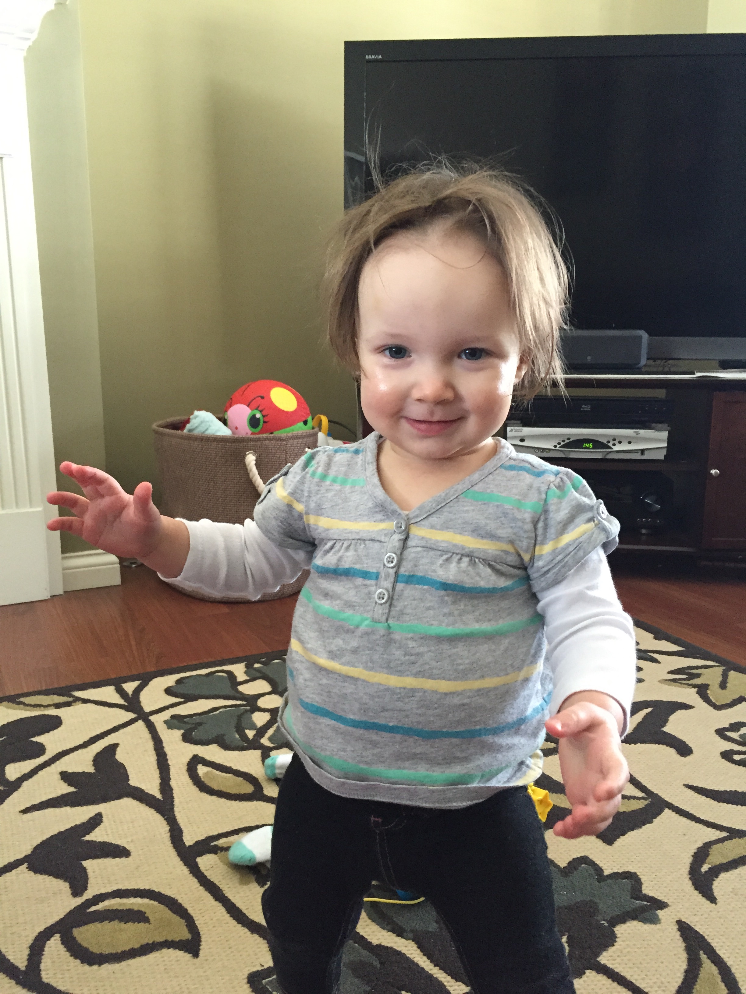 On Tuesday I watched you stand up on your own.  On Wednesday I watched you take 2 timid steps (unassisted!) to the couch.  Then 4 steps to the ottoman.  On Thursday you walked 8 steps by yourself to me.  Yes, 8 exactly.  I counted them.  Which is pretty amazing considering I was waving my hands like a crazy person and yelling “Yaaaaaay! Big girl! Big girl!  Oh my goodness!”
