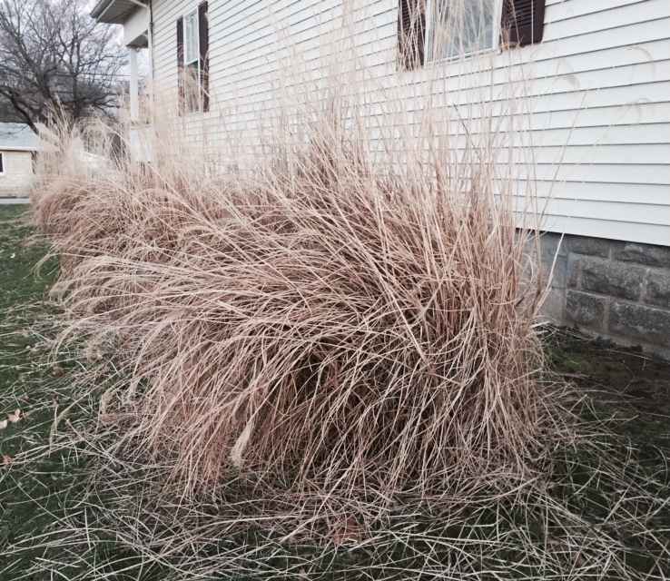PawPaw had planted some ornamental grassy bushes next to the house. They grew tall and were quite lovely. (The picture above shows them dried out & brown from winter. Normally they are bright and green).
