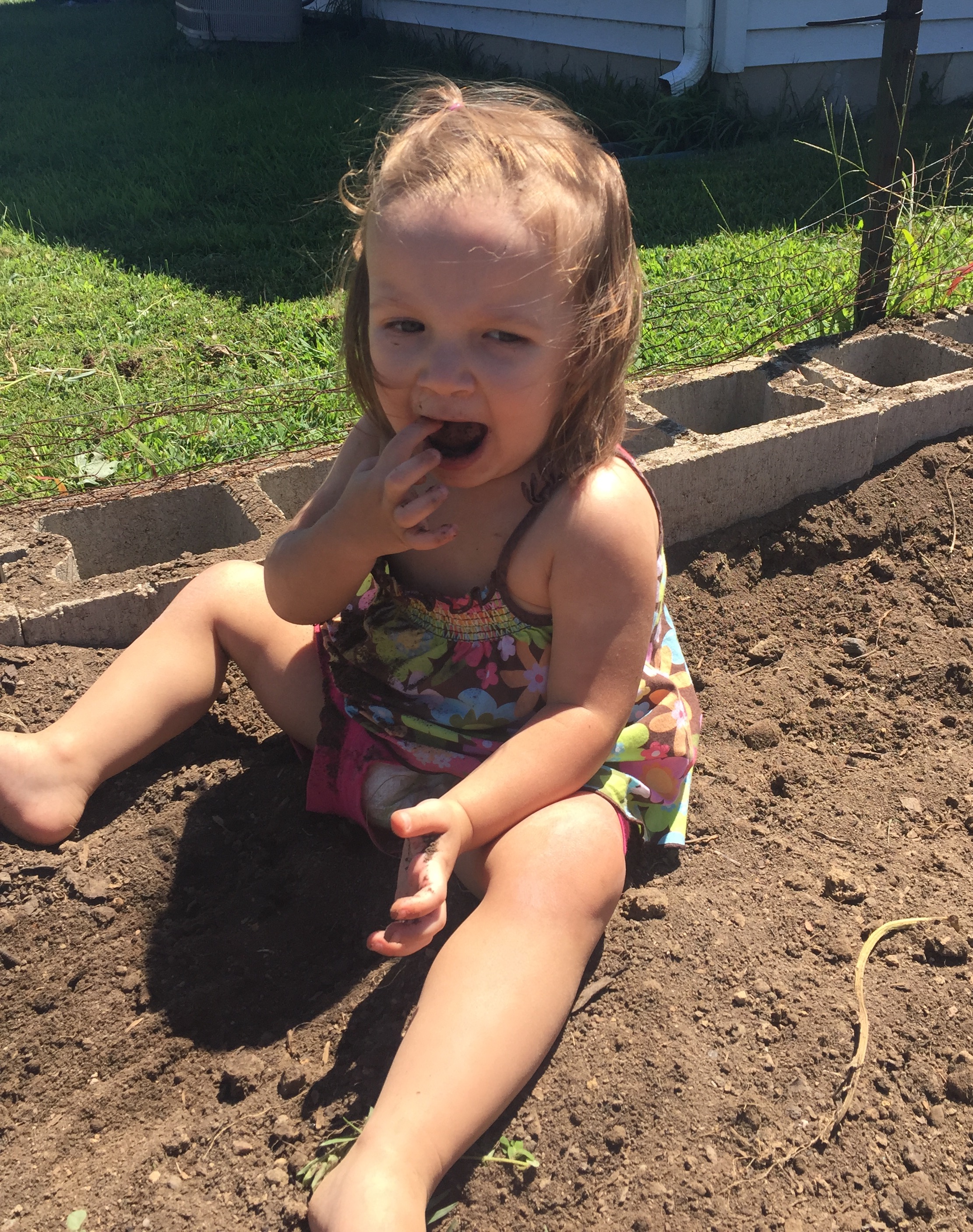 Neala- you definitely entertain yourself quietly. You climb into the potato patch and eat the dirt. Every.single.time. I’m pretty sure you think the garden is a giant edible playground.